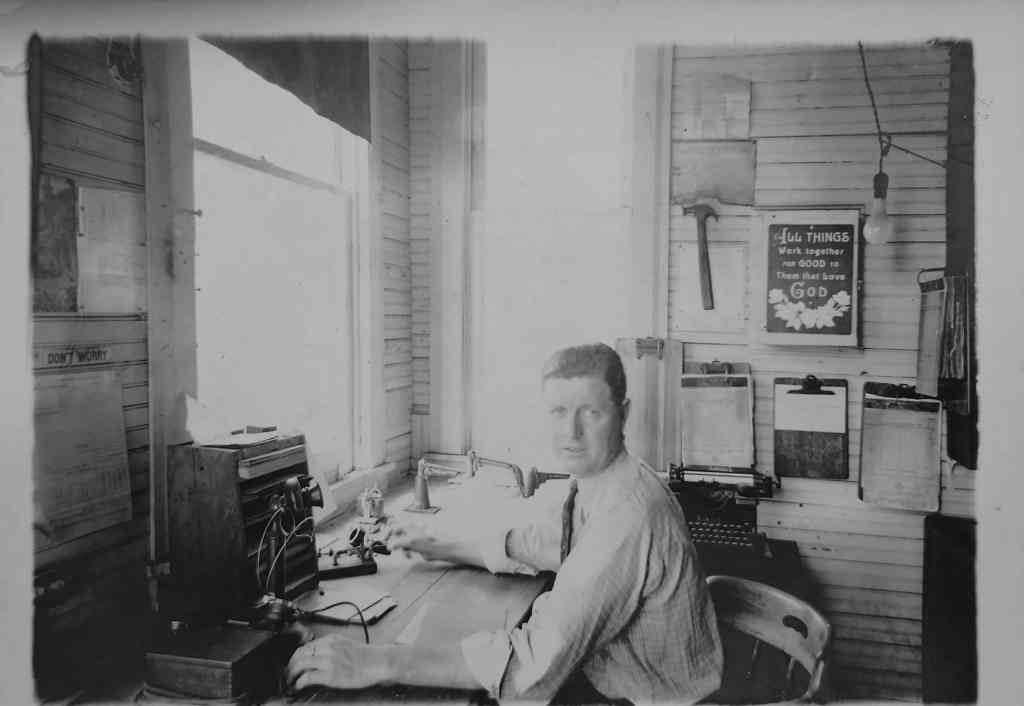 “My dad was the station agent for the railroad,” he says. “Never left a minute early and never had direct